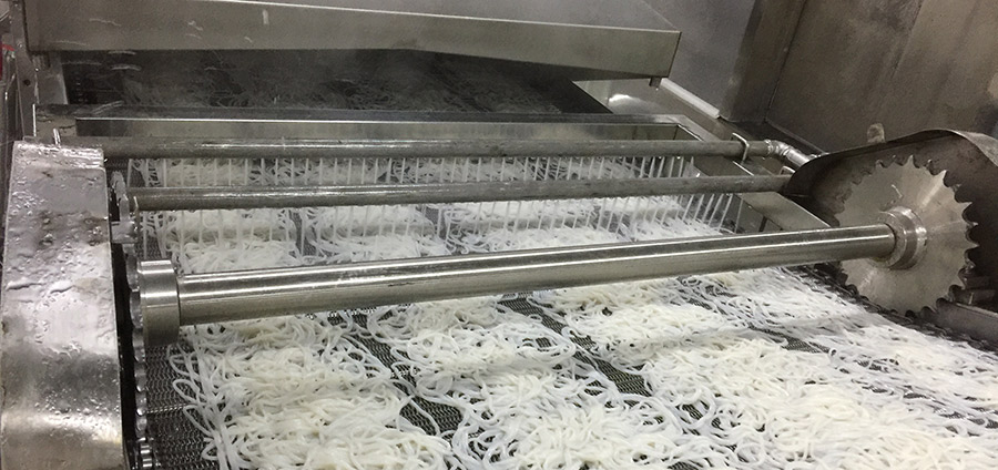 為了延長鮮米粉的保質(zhì)期,包裝好的米粉需要進行巴氏滅菌。 通過蒸汽完成最后的殺菌后進入到冷卻。